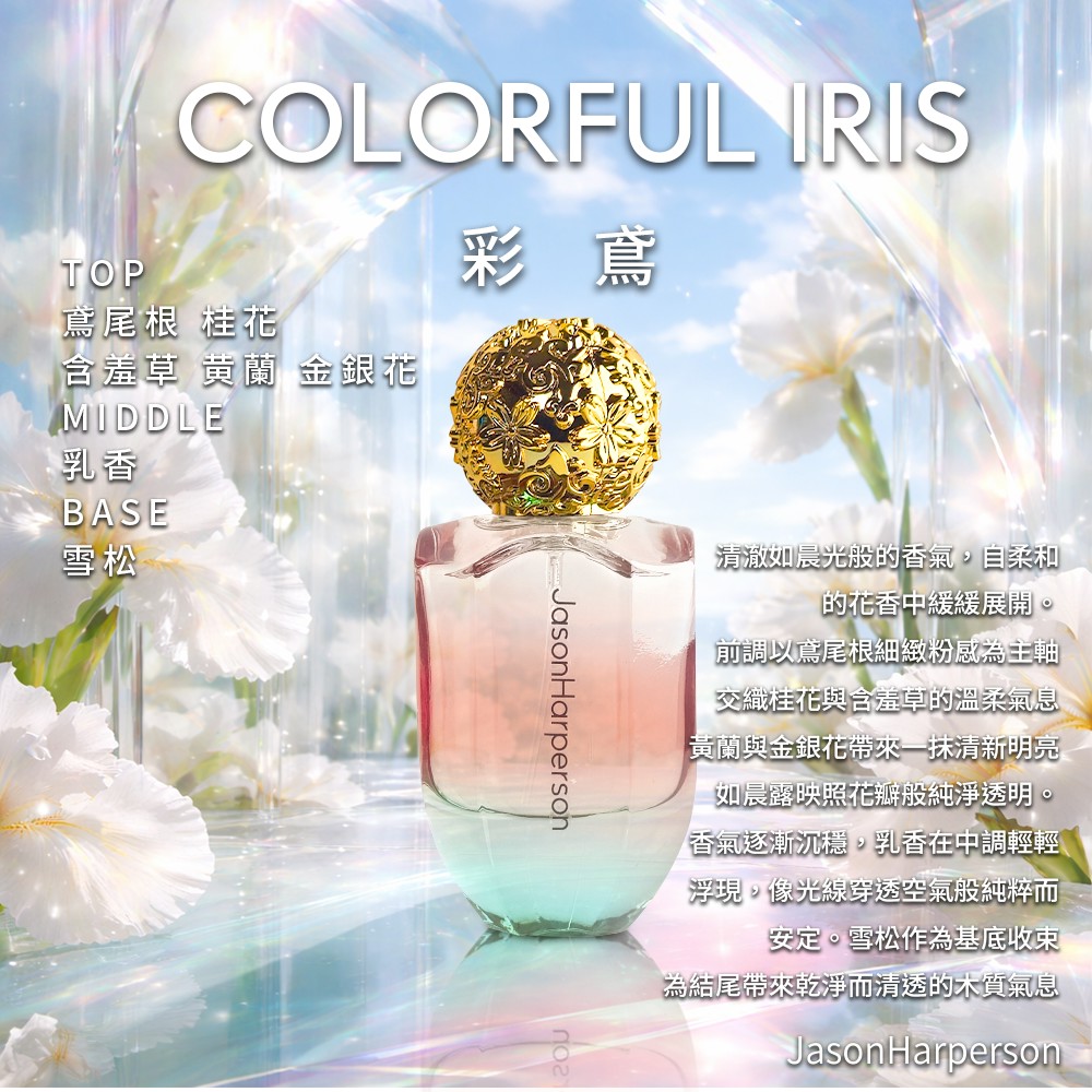 清澈如晨光般的香氣,自柔和的花香中緩緩展開。前調以鳶尾根細緻粉感為主軸,交織桂花與含羞草的溫柔氣息